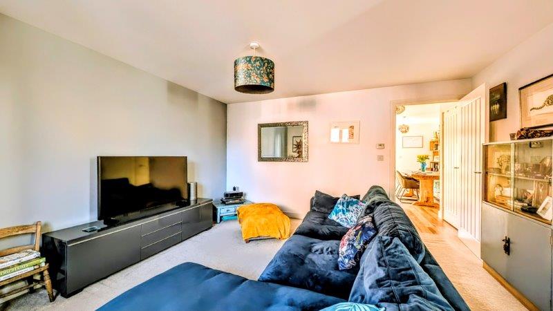 LIVING ROOM 4.56m x 4.18m, uPVC double glazed French doors to rear garden, two double radiators, telephone point, tv point, under-stairs recess, stairs to landing