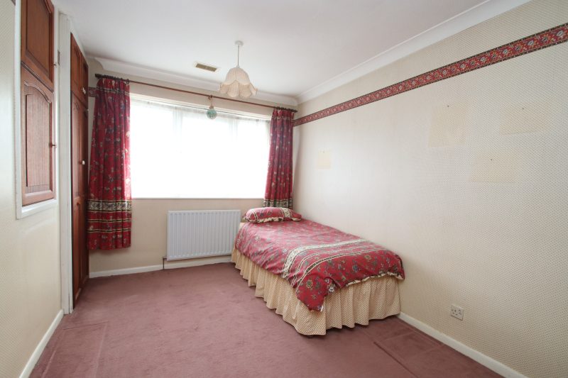 BEDROOM 3 8ft 9 (2.68m) x 8ft 5 (2.57m) westerly facing rear aspect room via double glazed window overlooking rear gardens, panelled radiator, triple built-in wardrobe via panel effect doors, further recess.