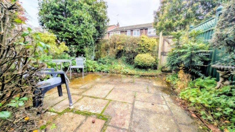 SMALL REAR GARDEN paved patio, flower and shrub borders, timber fencing, gated access to rear