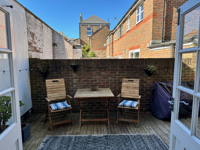 OUTSIDE to the rear of the property there is an enclosed decked rear garden approximately 18ft (5.49m) x 11ft (3.33m) feature brickwork archway leading to door to entrance hall, outside power point, outside courtesy light.