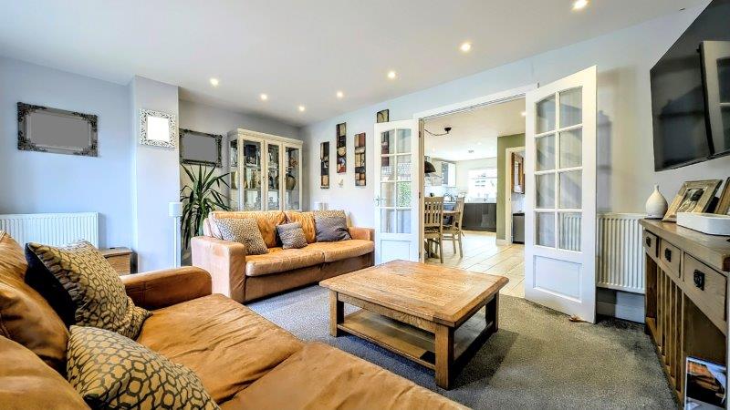 LIVING ROOM 4.94m x 3.67m, two radiators, uPVC double glazed French doors and adjacent side panels to rear garden