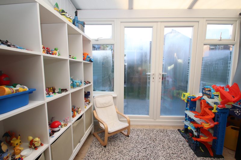 DINING ROOM 12ft (3.66m) x 9ft 4 (2.86m) plus entrance recess, central chimney breast with period cast iron mantle and decorative surround, exposed painted floorboards, panelled radiator, side aspect double glazed window, natural wood part panelled part single glazed period style door leading through to conservatory with adjacent single glazed windows, period skirting boards and picture rail.