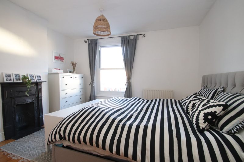 BEDROOM 1 13ft 2 (4.03m) x 12ft (3.65m) front aspect room via double glazed period style sliding sash window, central chimney breast with period cast iron mantle and decorative surround, slate hearth, adjacent period built-in wardrobe via natural wood panelled doors, storage drawer below, exposed varnished floorboards, panelled radiator.