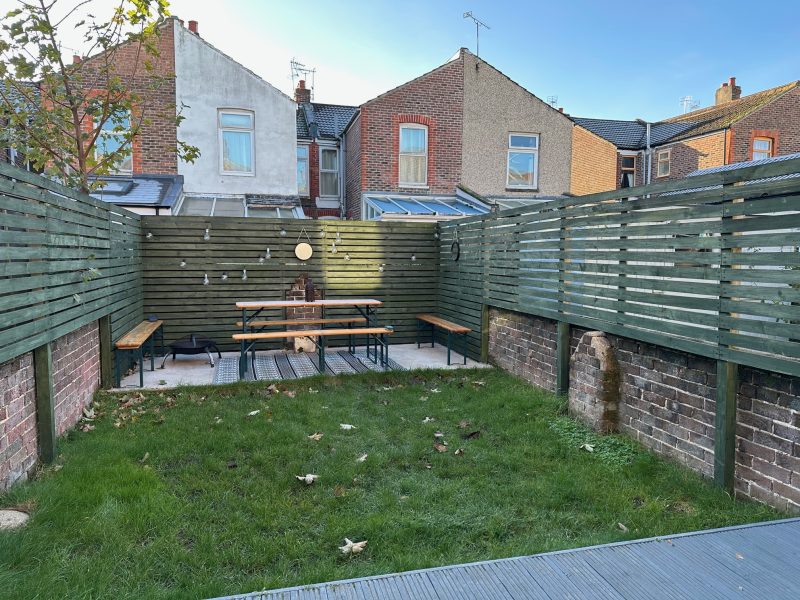 OUTSIDE to the front of the property there is a forecourt approach with period tiled flooring, wrought iron and glass canopy. To the rear of the property there is an enclosed southerly aspect rear garden approximately 25ft 7 (7.81m) x 13ft 6 (4.11m) raised deck area immediately behind conservatory, side storage area, main lawn with further rear concrete area with space for table and chairs, wooden fencing.